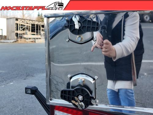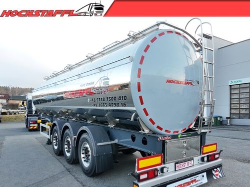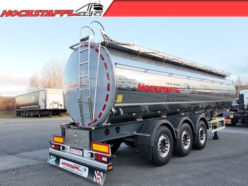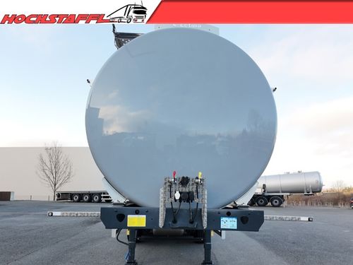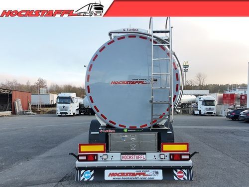 - » Edelstahltank für den Transport von Milch, Lebensmitteln und nicht gefährlichen Flüssigkeiten » thermisch isoliert gemäß ATP-Vorschriften, druckloser Tank » Gefertigt aus Edelstahl AISI 304 (DIN 1.4301), jede Kammer mit Mannloch und inneren Verstärkungsringen aus Edelstahl » Mannlöcher 3 × Füllöffnungen DN500 Jedes Mannloch mit Sicherheits-Überdruck-/Unterdruckventil Verriegelung gegen unbeabsichtigtes Öffnen » Isolierung und Verkleidung (ATP „IN“) Tankkörper: ca. 50 mm Polyurethan Tankböden: 100 mm Glaswolle Außenverkleidung: Edelstahl, hochglanzpoliert Unterseite: GFK, RAL 7001 » Weitere Ausstattung Betriebsdruck: Atmosphärisch 3 × Thermometer (-20°C bis +150°C) Aluminium-Laufsteg mit Rutschhemmung (rechts) Klappbares Edelstahlgeländer Edelstahlleiter hinten (rechts) CIP-Reinigungssystem mit 5 Sprühköpfen, einzeln absperrbar Schlauchabweiser links und rechts Innenleiter im Tank » Entladesystem 3 × Bodenventile DN100, Bedienung oben 1 × Entladeleitung DN100, isoliert, hinten mittig 1 × Absperrklappe DN100 mit Deckel, manuell Edelstahl-Armaturenbox hinten » Fahrgestell Berger Ecotrail Modell SATA 10.5, verzinkt Sattelkupplungshöhe: 1150 mm Bereifung: Continental 385/65 R22,5, Alufelgen (Alcoa) Rahmen aus Feinkornstahl S700 » Achsen und Fahrwerk 3 × SAF-Achsen, Scheibenbremsen Achse liftbar (automatisch ab 16 km/h) Automatische Traktionshilfe (über CAN/ASR) Anfahrhilfe über Liftachse steuerbar Reifendruckkontrollsystem (RDKS) » Ausstattung 6 × Schmutzfänger Edelstahlpaket (Halterungen, Lichtträger etc.) Unterfahrschutz und Seitenverkleidung aus Aluminium Steckdosen vorne: 2×7-polig, 1×15-polig Reserveradhalter (Winde) » Beleuchtung 24V System (Hella) LED-Begrenzungsleuchten LED-Seitenmarkierungsleuchten 2 × Rückfahrleuchten hinten *Es gelten unsere aktuellen Allgemeinen Geschäftsbedingungen unter Kontaktdaten anzeigen Der Preis ist ohne MwSt.. Das Angebot ist freibleibend. Fehler, Irrtümer und Zwischenverkauf vorbehalten.