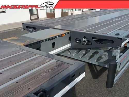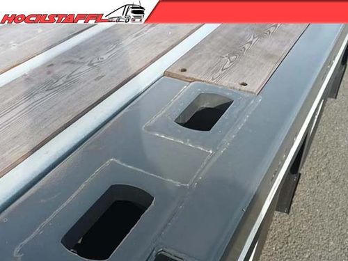 - » Ladefläche in ausziehbarer Ausführung mit pneumatisch betätigter Verriegelung » 7 Paar Verzurrringe nach aussen klappbar (LC 5 000 daN) » 3 Paar Verzurrringe nach aussen klappbar (LC 10 000 daN) » Eine verzinkte Stahlstirnwand ca. 1600 mm hoch. (EN12642-XL) » 10 Paar Rungentaschen für Steckrungen 100 x 50 mm im Aussenrahmen » 6 Paar WADER Containertaschen in der Ladefläche, für 1x 20' Container, 2x 20' Container oder 1x 40' Container. Heck bündig » 4 Paar Rungentaschenleisten, quer in der Ladefläche montiert, für Steckrungen 100 x 50 mm » Eine verzinkte Halterung quer unter der Ladefläche.(2390x720x400) » Ein Werkzeugkasten HDPE 1200x500x480 hinten unter der Ladefläche in Fahrtrichtung links und rechts » Liftachse an der Vorderachse » Vier um ca. 400 mm ausziehbare Warntafeln ca. 423 x 423 mm » 2 LED Rückfahrscheinwerfer » Lastmanometer zur Ermittlung der Achslasten *Es gelten unsere aktuellen Allgemeinen Geschäftsbedingungen unter Kontaktdaten anzeigen Der Preis ist ohne MwSt.. Das Angebot ist freibleibend. Fehler, Irrtümer und Zwischenverkauf vorbehalten.
