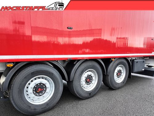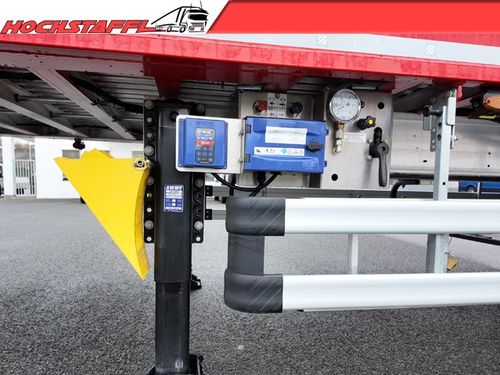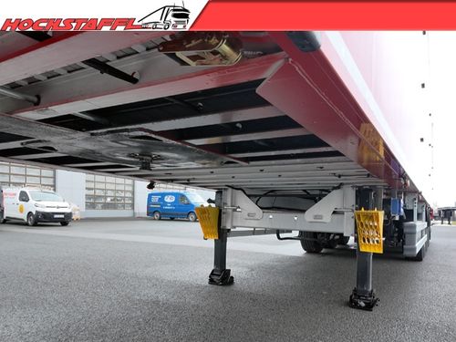- » Ladevolumen ca. 91 m³ » SAF-Intradisc-B9-Achsen mit Scheibenbremsen ø430 mm (22,5" Scheibe) » Achslift auf 1. Achse » Aluminium-Profilboden "Cargo Floor" » Boden-Profil 8 mm profiliert » staplerbefahrbar bis Reifendruck max. 1.000 kg pro Reifen (2t Stapler) » 13 Paar 2 t Bodenzurrbügel, seitlich im Abschlußprofil versenkt » Kunststoff-Rollplane in verstärkter Ausführung (900g/m²) » 2 Stück Voll-LED-Mehrkammer-Schlussleuchten "Aspöck" » 2 Stück LED-Positionsleuchten vorne » 2 Stück LED-Umrissleuchten hinten » Blinkende LED-Seitenmarkierungsleuchten » Schubbodenmulde = RAL 3002 Karminrot » Stehpodest = unlackiert » Radnaben schwarz = pulverbeschichtet » Stützfüsse schwarz = pulverbeschichtet » Unterfahrschutz = verzinkt » Druckluft-Anschluss (für z.B. Luftpistole, etc.), Anbau hinten links » 1 Stück Kunststoff-Werkzeugkasten 830 x 500 x 470 mm *Es gelten unsere aktuellen Allgemeinen Geschäftsbedingungen unter Kontaktdaten anzeigen Der Preis ist ohne MwSt.. Das Angebot ist freibleibend. Fehler, Irrtümer und Zwischenverkauf vorbehalten.